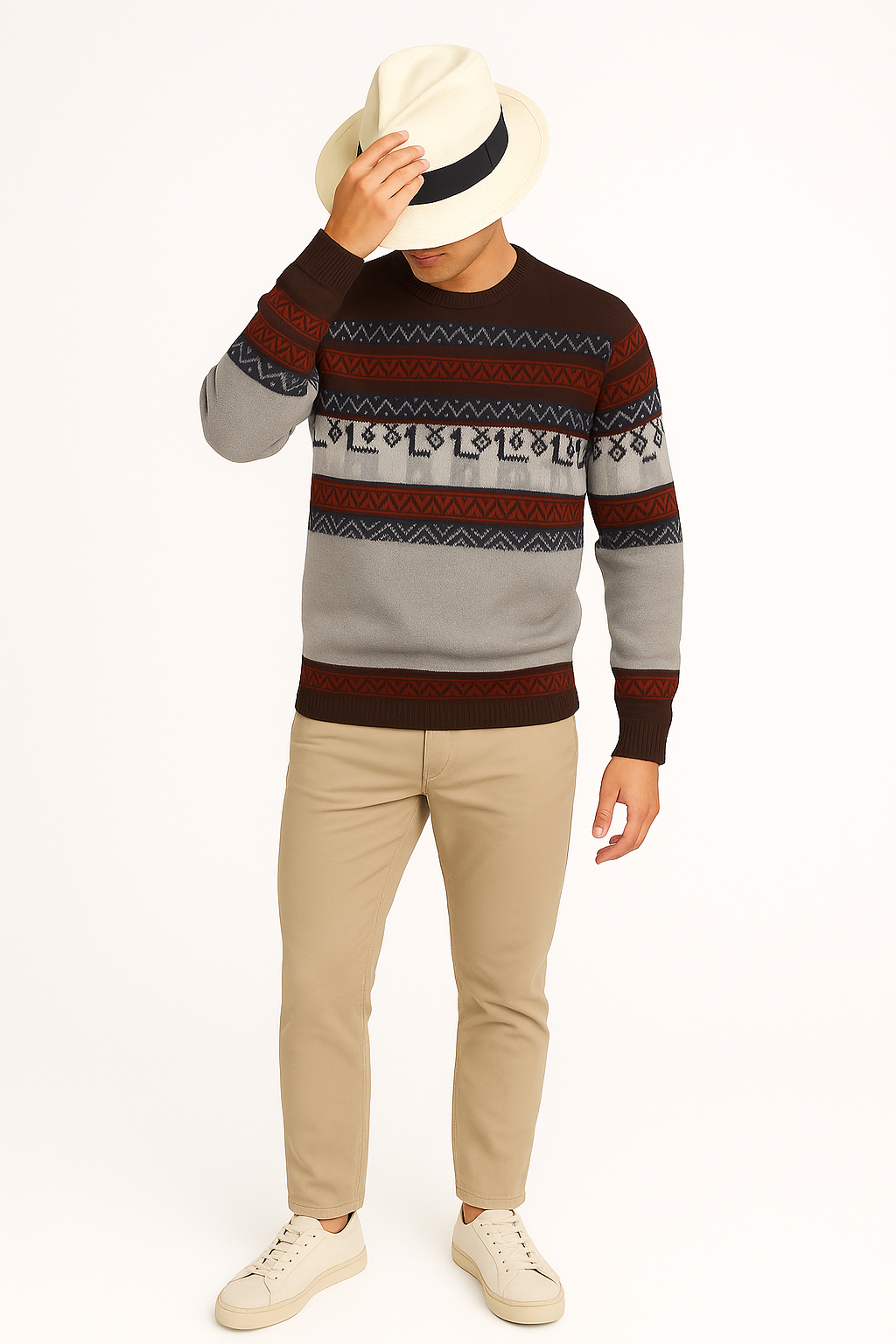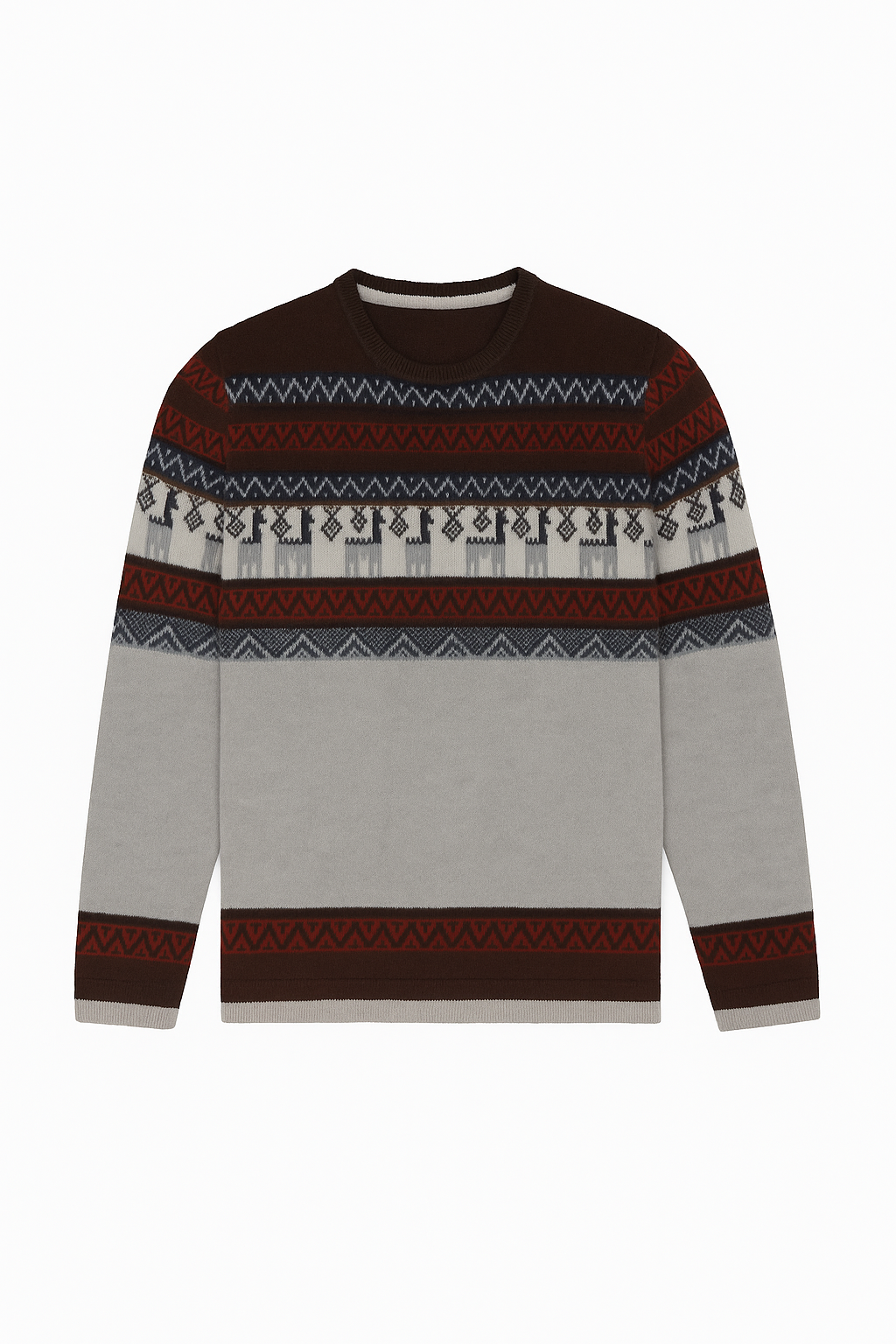 Warm and timeless, the Puka Ñawi sweater blends the natural elegance of cream wool with bold red patterns inspired by Andean symbolism. In Quechua, Puka Ñawi means “Red Eye”—a protective design once woven into garments to watch over the wearer and honor the life force of the land. Soft, breathable, and rich in heritage, this piece is crafted for those who value tradition and quiet strength.